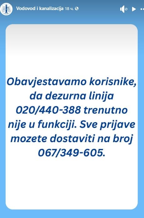 Podgorički Vodovod je saopštio da dežurna linija 020/440-388 trenutno nije u funkciji.